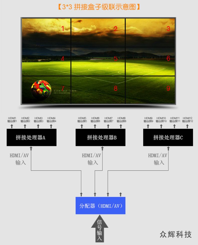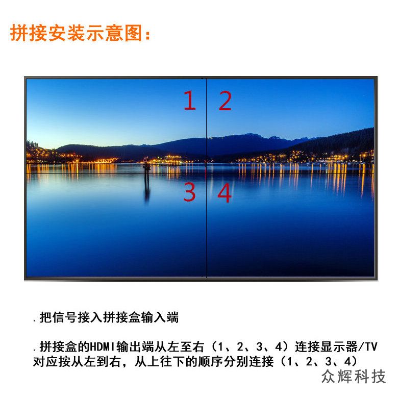 4個HDMI高清接口USB循環(huán)播放 眾輝4電視拼接盒ZH-240